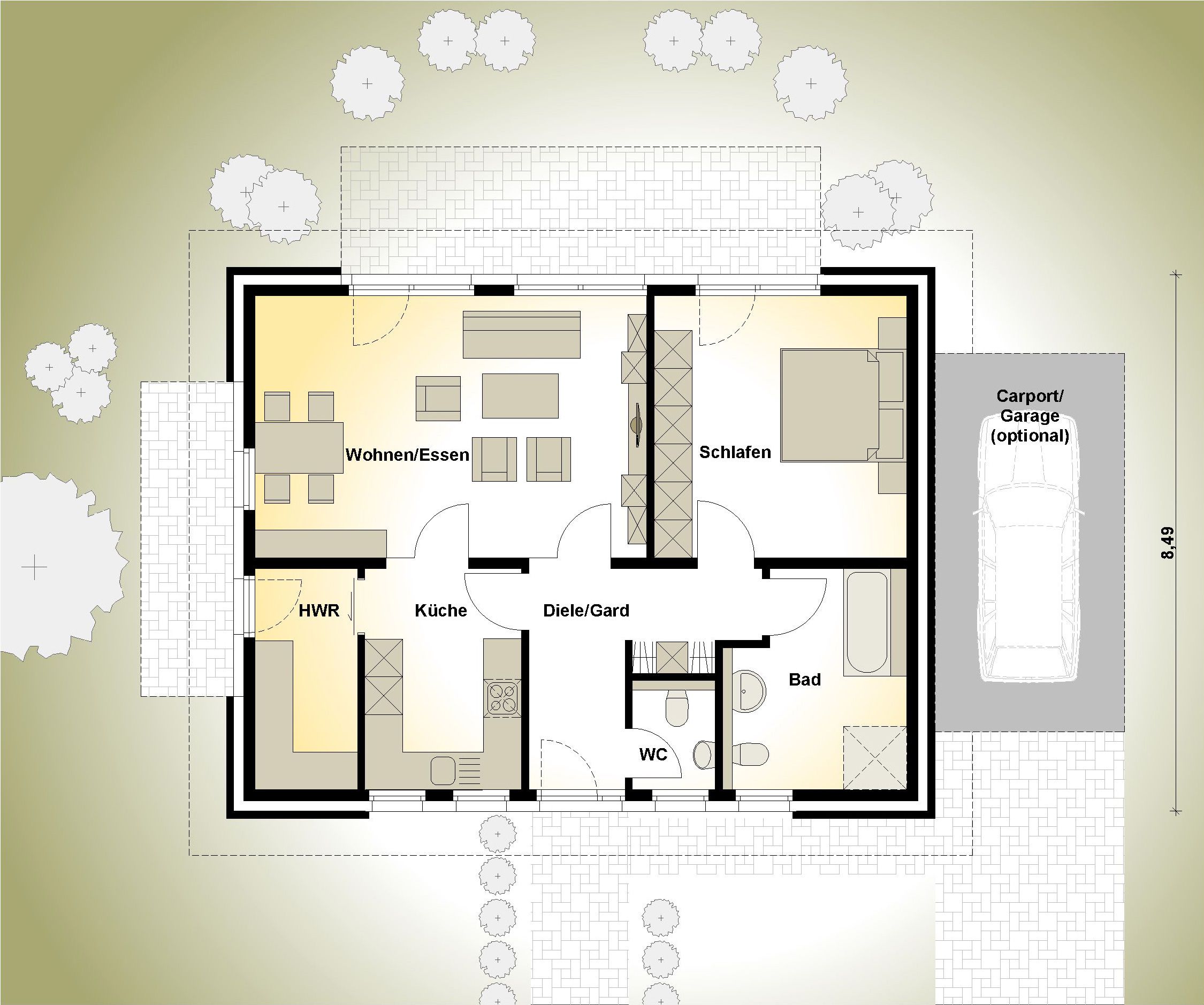 Wohnfläche abhängig von Bebaubarkeit des Grundstücks und Grundrissgestaltung