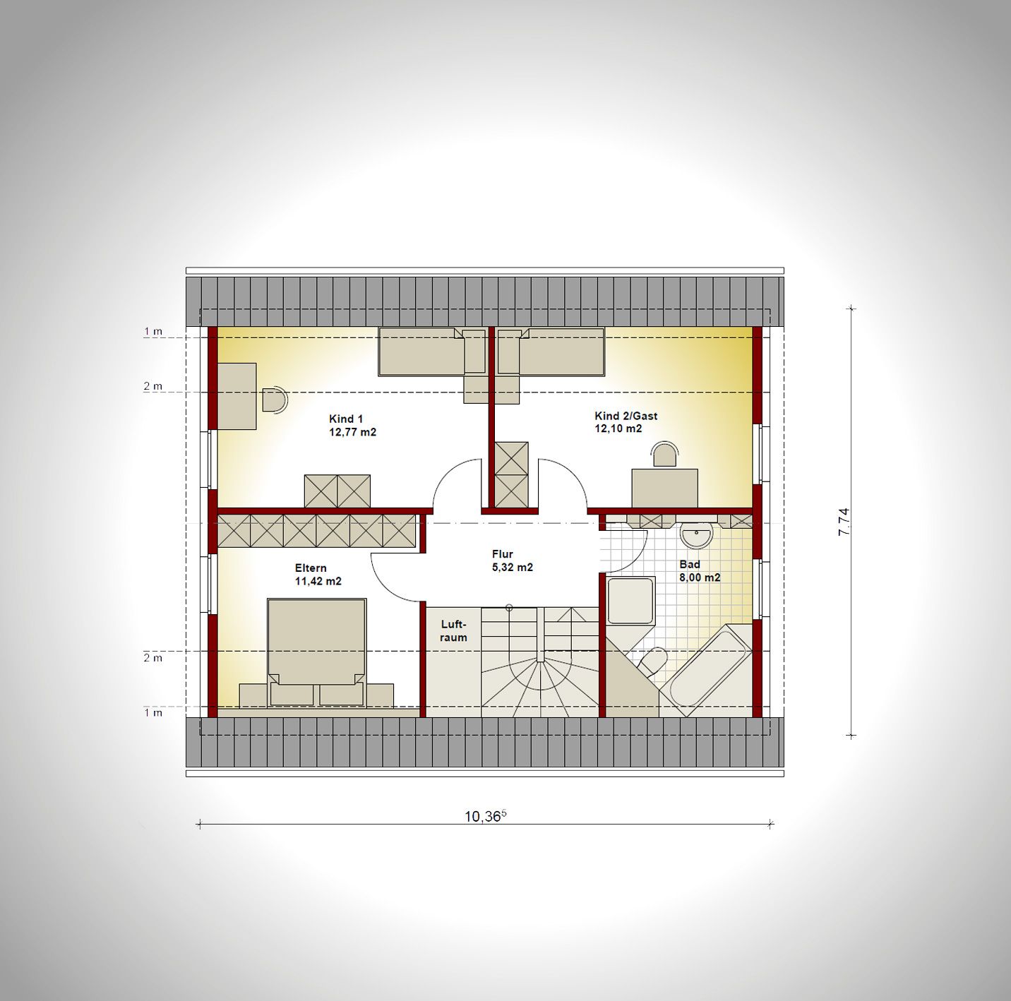 Hinweis:Die dargestellte Einrichtung dient der Veranschaulichung. Die tatsächliche Ausstattung richtet sich im Einzelfall nach der Bauleistungsbeschreibung