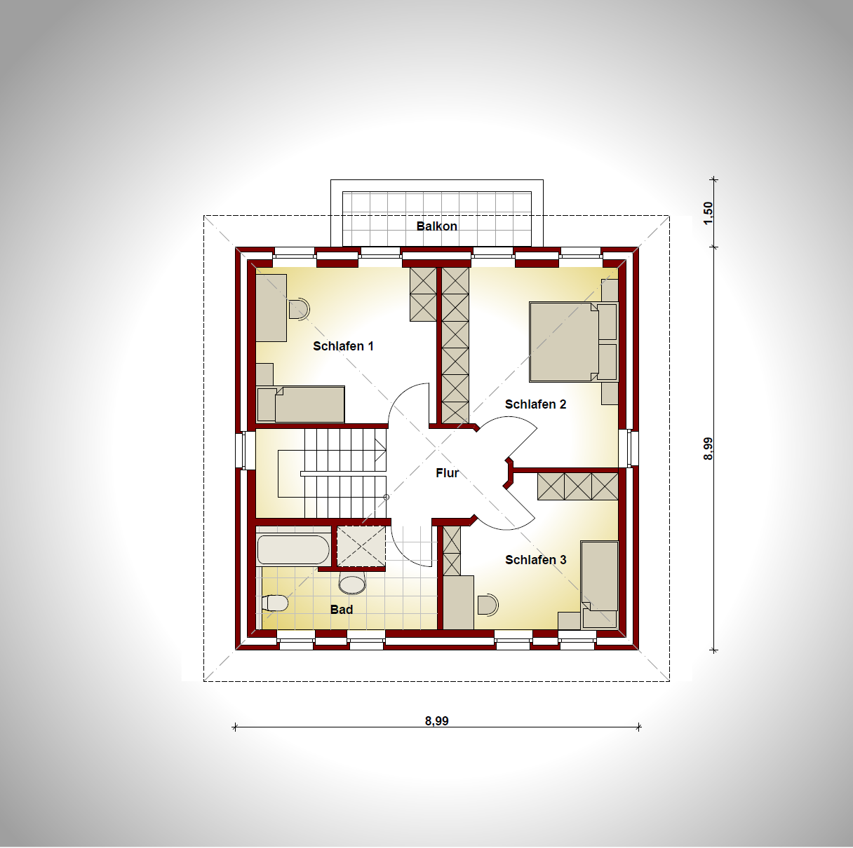 Hinweis:Die dargestellte Einrichtung dient der Veranschaulichung. Die tatsächliche Ausstattung richtet sich im Einzelfall nach der Bauleistungsbeschreibung