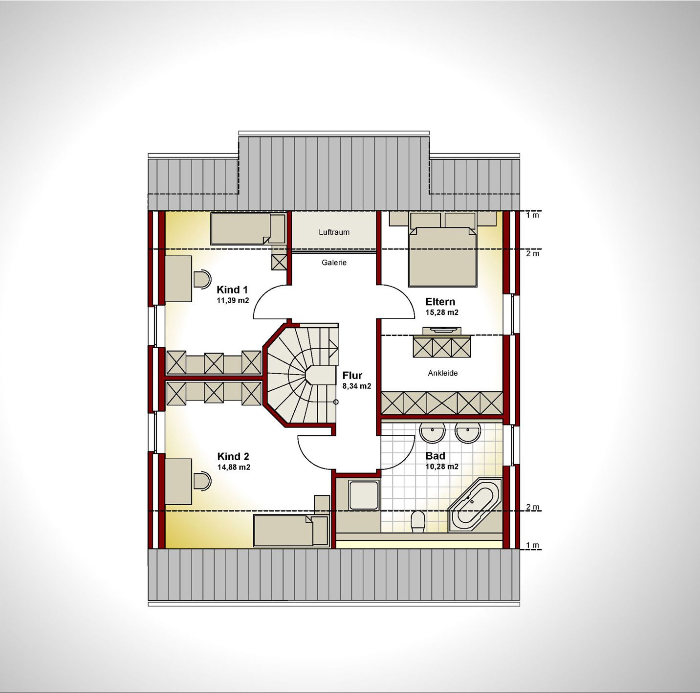Hinweis:Die dargestellte Einrichtung dient der Veranschaulichung. Die tatsächliche Ausstattung richtet sich im Einzelfall nach der Bauleistungsbeschreibung