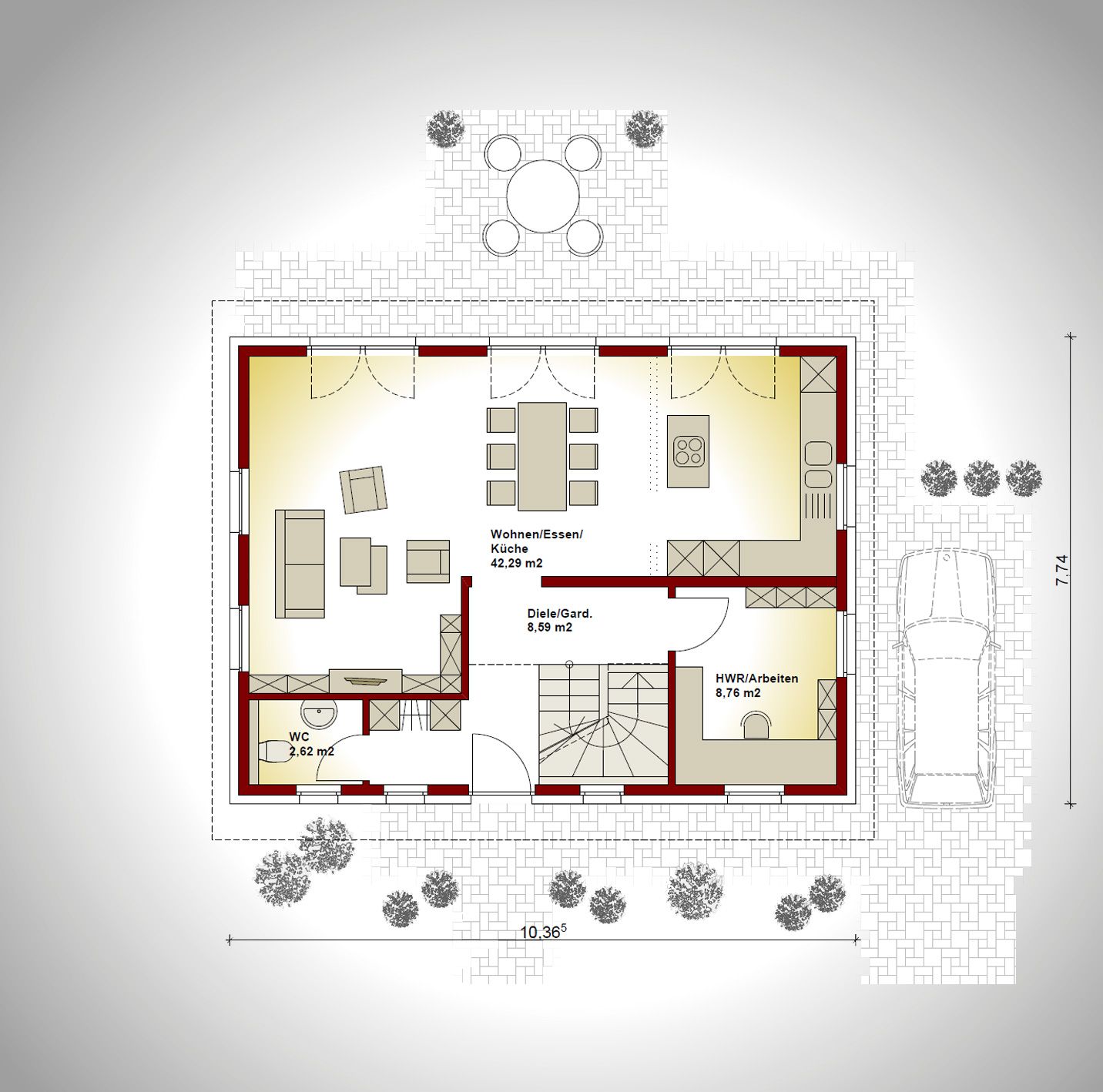 Hinweis:Die dargestellte Einrichtung dient der Veranschaulichung. Die tatsächliche Ausstattung richtet sich im Einzelfall nach der Bauleistungsbeschreibung